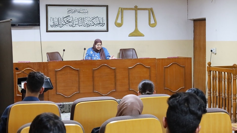 The workshop was presented by Assistant Lecturer Sura Adeeb Hameed and took place in the Model Courtroom.