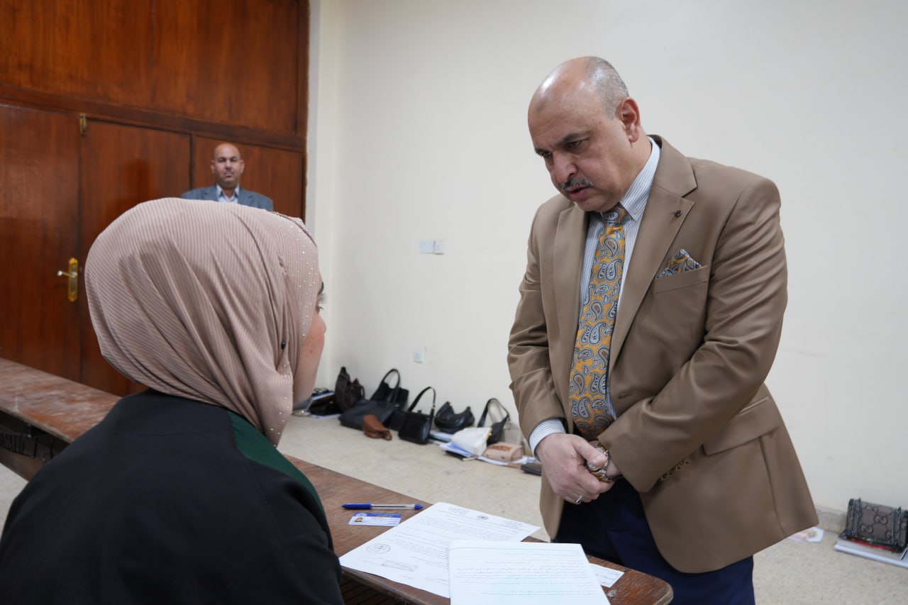 He was received by the Dean of the College, Prof. Dr. Ali Hadi Atiya, who accompanied him on a tour of several examination halls to observe student compliance with ministerial guidelines and ensure the availability of the logistical and environmental requirements necessary to provide a suitable atmosphere for taking exams.